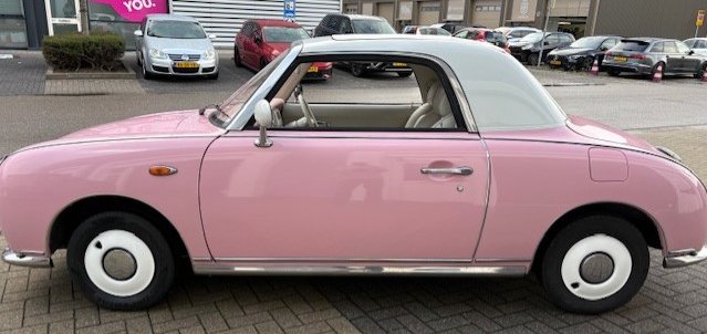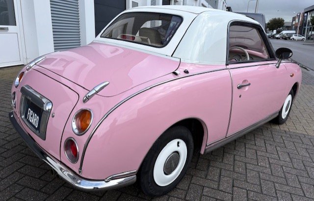 Furthermore, it's equipped with central locking, the ORIGINAL Figaro key, an original, undamaged pink dashboard top, and very nice chrome and interior.